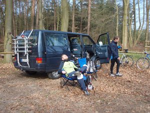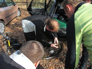 Ich hatte einen Platten Reifen, aber zum Glück kein Loch drin. Wir pumpten ihn einfach wieder auf und die Luft blieb drin.P4050036