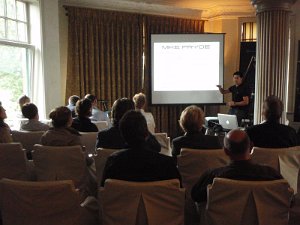 Präsentator war Mike Pryde, Leiter der Bike Division und Sohn von Firmengründer Neil.Neil Pryde Praesentation 011