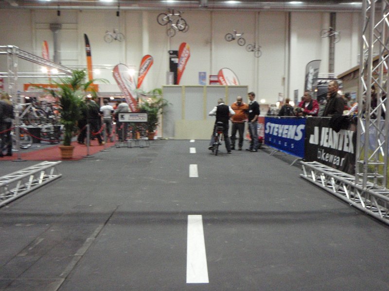 Erster Kontakt mit der Fahrrad-Ausstellungsfläche war das Queren der Testfahrstrecke.Reisen Hamburg 014