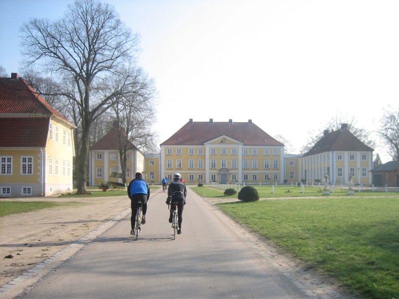 Erste-MitfahrerDie Bilder zeigen die Rennrad-Tour mit Exercycle Radsportreisen nach Mölln im Jahr 2007.Vor-dem-StartFahrrad-AnhaengerNebenstrassePannen-StopAnfahrt-SchlossSchloss-WoternSchloss-Wotern-2